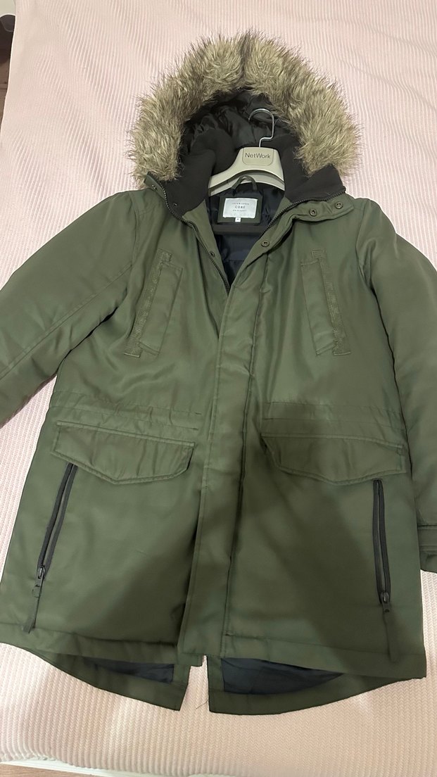 Erkek Yeşil Kürklü Midi Mont