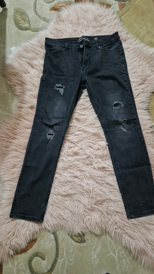 Gri renkli, denim pantolon, normal kesim ve yırtık detaylarıyla sokak stiline uygun günlük rahatlık sunar. 2 kere anca giyildi