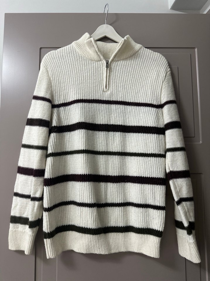 Erkek Yüksek Yaka Çizgili Triko Kazak