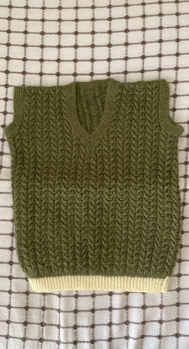 V yaka, haki renkli, örme dokulu, rahat kesim kadın süveter. Midi uzunlukta ve bohem tarzda, günlük kullanıma uygun.