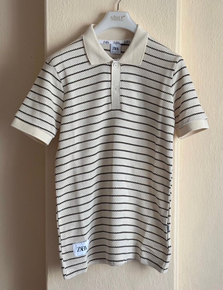 Erkek Zebra Desenli Kısa Kollu Polo Tişört