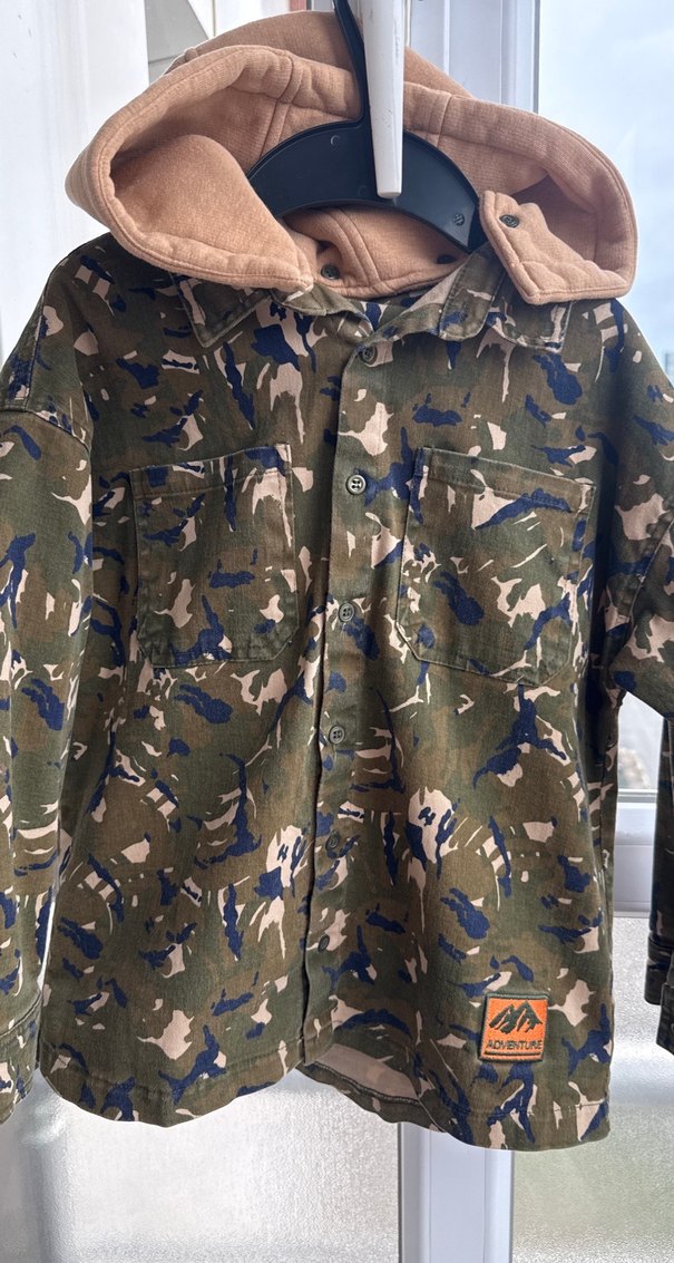 #koton kids marka 5-6 yaş kapüşonlu düğmeli çıkarılabilir şapka #askeri #kamuflaj #gömlek #ceket #ilkbahar çok az ve temiz kullanılmış şapkası çıkarılabilir