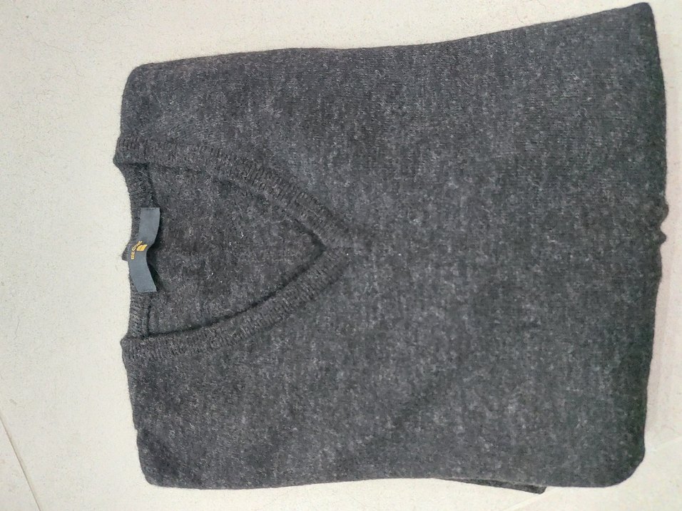 V yaka ve uzun kollu, yumuşak yünden, düz gri örgü erkekkazak. Normal midi uzunlukta, günlük rahat kullanım için uygundur. yunludur