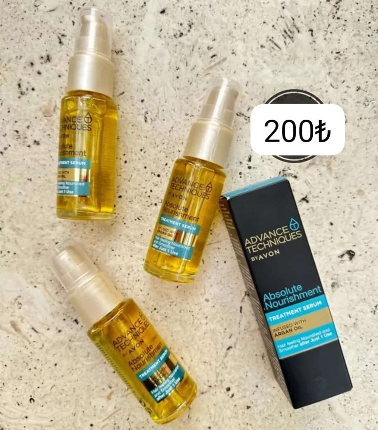 Advance Techniques by Avon Absolute Nourishment Saç Serumu, argan yağı ile saçları besleyip yumuşaklık ve parlaklık sağlar. Fiyatı 200₺.
