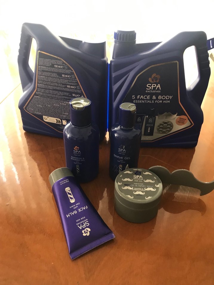 Yeni şık kutusuyla dizayn edilmiş Erkekler için SPA 5 parçalı yüz ve vücut bakım seti; tıraş jeli, yüz balsamı ve bakım yurt dışından hediye geldi hiç kullanılmadı