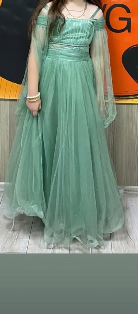 Uzun kat kat tüllü abiye elbise etek uçlarında giyildiginde belli olmayan tülünde küçük deforme var kızım biryere taktı sanırım, fiyatı o yüzden uygun yazdım..fotoğrafta belirttim.düğünler için uygun. 8 9 yaş uyumlu ölçü sorabilirsiniz