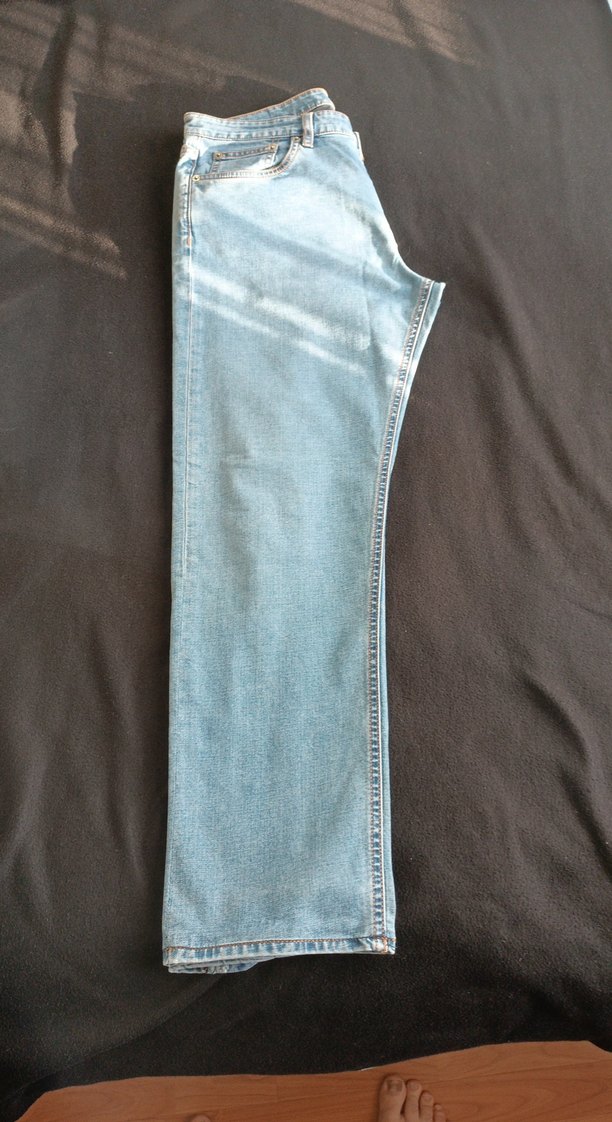 Kumaş temiz, yırtık/lekesiz ✔️ Renk hafif solmuş (açık mavi wash, normal kullanım izi) Model eski sezon klasik kesim (trend slim değil) Yani: temiz ama “koleksiyonluk yeni gibi” değil.