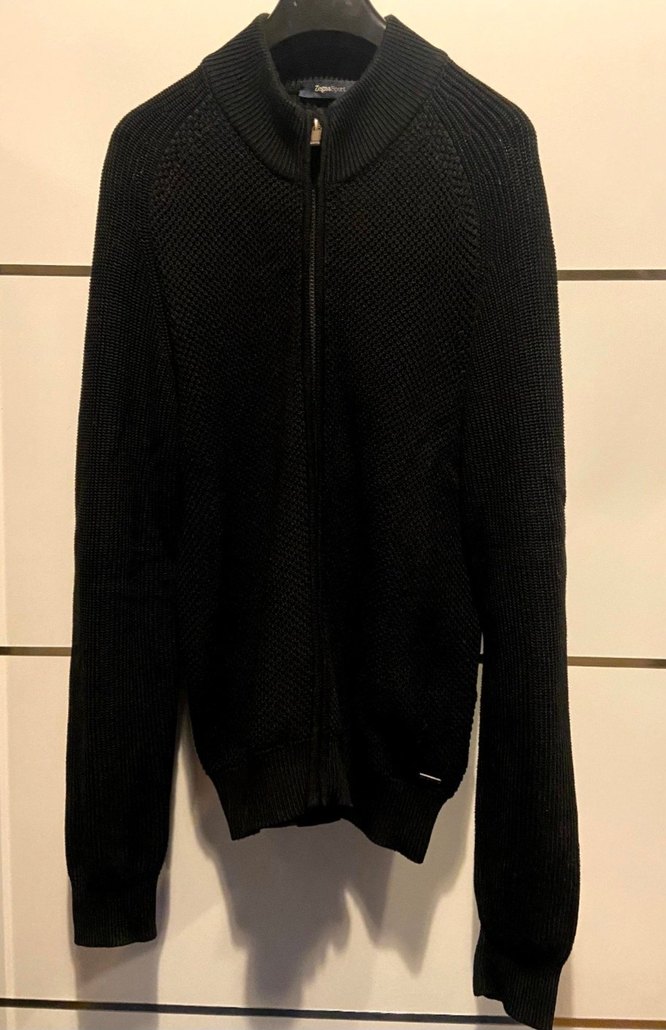 Erkekler için siyah renkli, örgü kumaştan yapılmış, yarım balıkçı yaka ve fermuarlı, uzun kollu, normal boyda hırka. Günlük sokak stili için uygundur. Medium beden rahat kesim large giyenlere de olur çok geniş değillerse