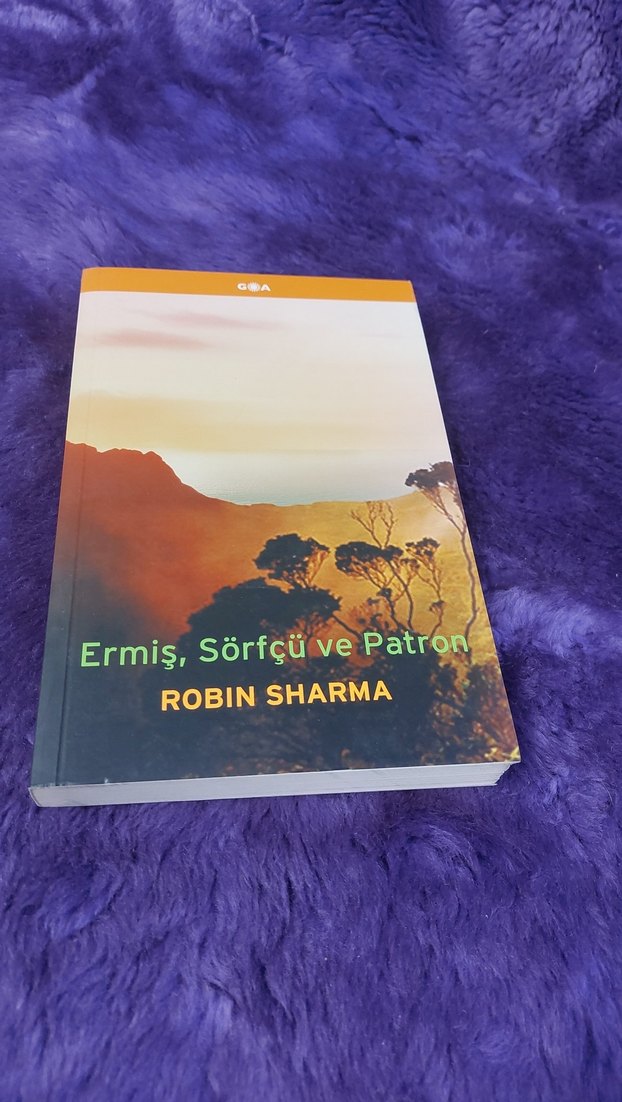 Robin Sharma'nın "Ermiş, Sörfçü ve Patron" kitabı, gün batımı ve ağaçların yer aldığı sakin bir doğa manzarası kapağına sahip.