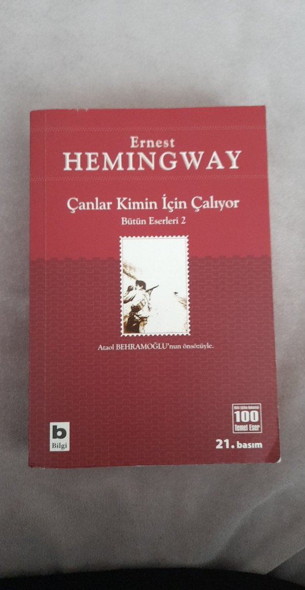 Ernest Hemingway'in "Çanlar Kimin İçin Çalıyor" adlı romanı, 21. basım olarak sunuluyor. Ataol Behramoğlu'nun önsözü yer alıyor.