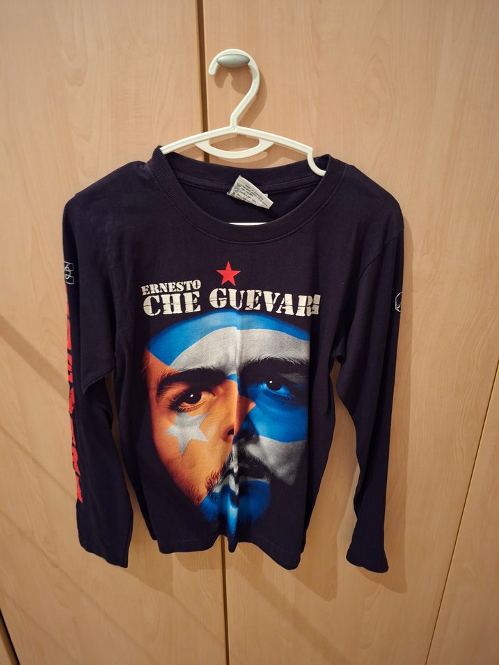 Ernesto Che Guevara baskılı, uzun kollu, yuvarlak yaka, bol kesim erkek sweatshirt. Yumuşak ve sıcak kumaştan, cırt cırt detaylı, koyu gri renkte.