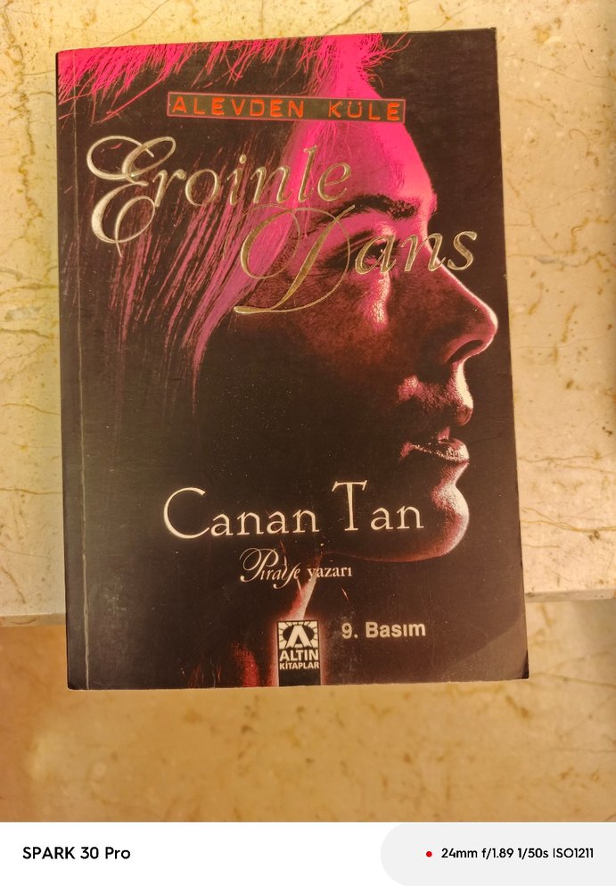 Canan Tan'ın 'Eroinle Dans' adlı romanı, Altın Kitaplar tarafından 9. basım olarak yayımlanmıştır. Kapakta bir kadının profil resmi yer alır.