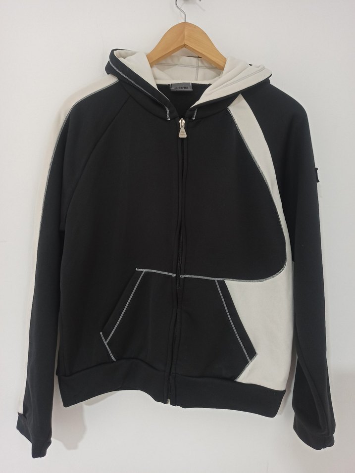 Fermuarlı ve kapüşonlu, siyah ve gri renklerde, yumuşak ve sıcak kumaştan yapılmış, uzun kollu ve normal boyda, rahat kesim ceket