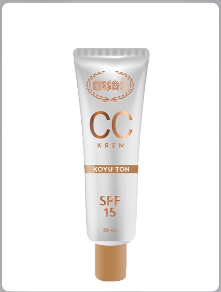 ERSAÇ CC krem, parlak bej renkte, SPF 15 koruması ve koyu tonlar için orta kapatıcılık sağlar. 50 ml tüp.