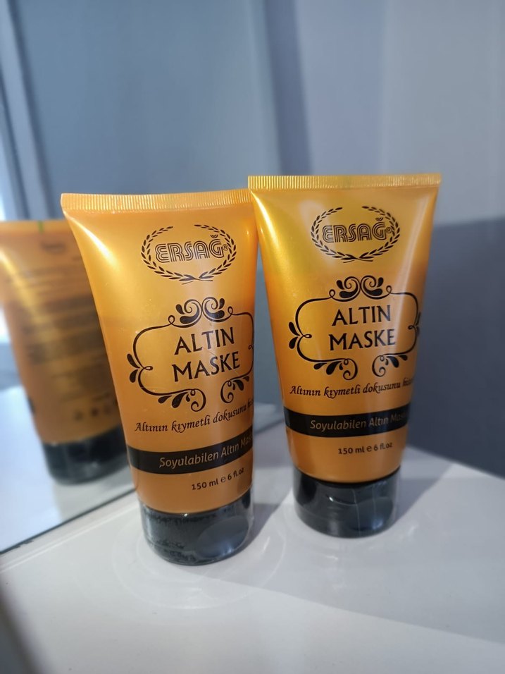 Ersağ Altın Maske, çözünebilir altın içeriğiyle cildin değerli dokusunu ve ışıltısını artırır. 150 ml tüpte besleyici bakım sunar. ✨