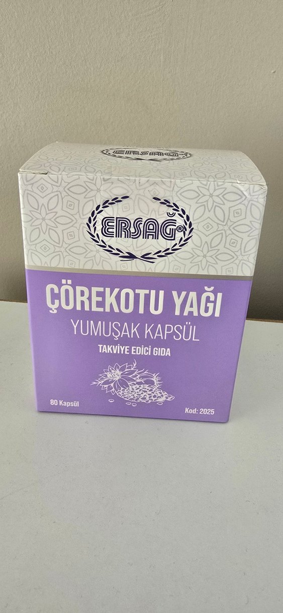 Ersağ çörekotu yağı yumuşak kapsül, 80 kapsüllük takviye edici gıda ürünüdür. Kolay tüketim için hazırlanmıştır.