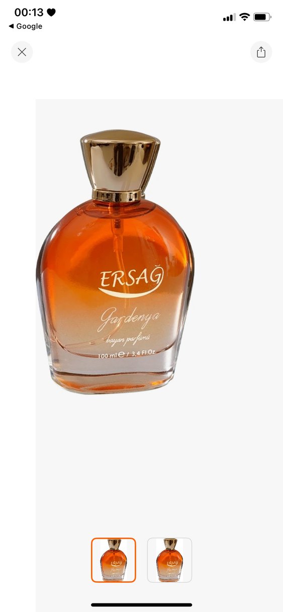 Ersag Gardenya kadın parfümü, çiçeksi kokuya sahip, 100 ml şişede ve altın renkli kapaklıdır.