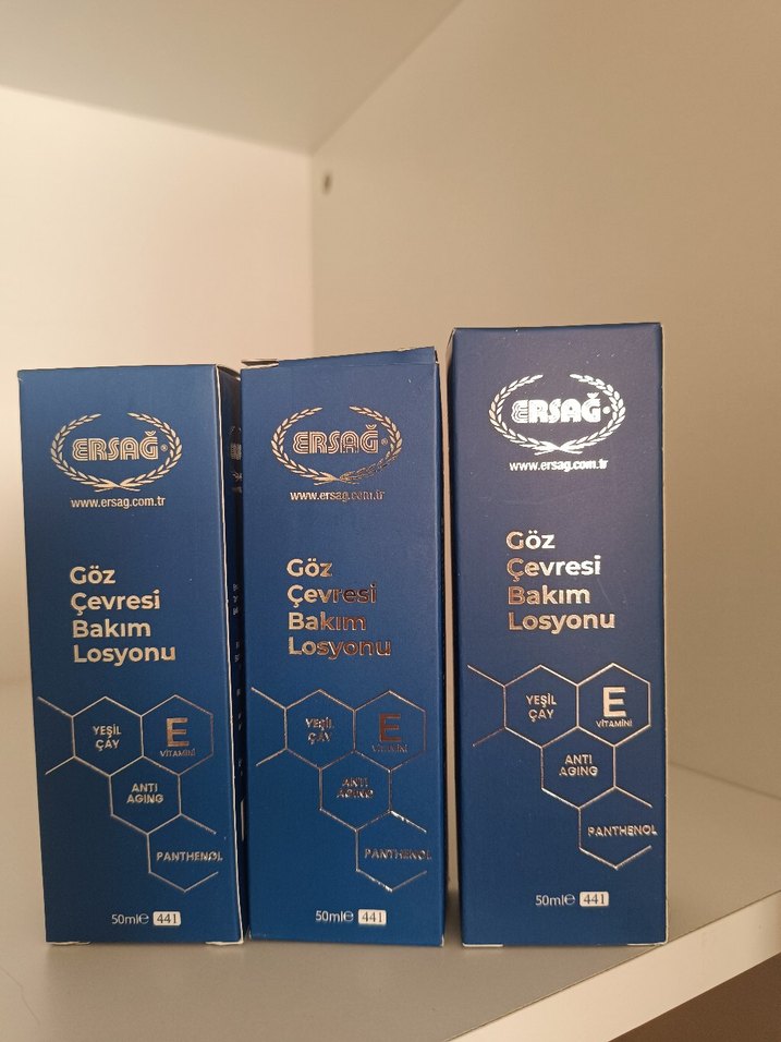 Ersağ göz çevresi bakım losyonu, yeşil çay, E vitamini ve panthenol içerir, cilt nemlendirme ve yaşlanma karşıtı destek sağlar.