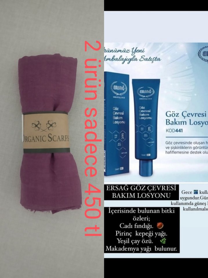 Ersağ göz çevresi bakım losyonu Göz çevresindeki şişkinlik ve yorgunluk belirtilerini hafifletir. Şalı organic scarf sitesinden aldım iade süresi dolduğu için satıyorum bambu kraş şal mürdüm eriği rengi