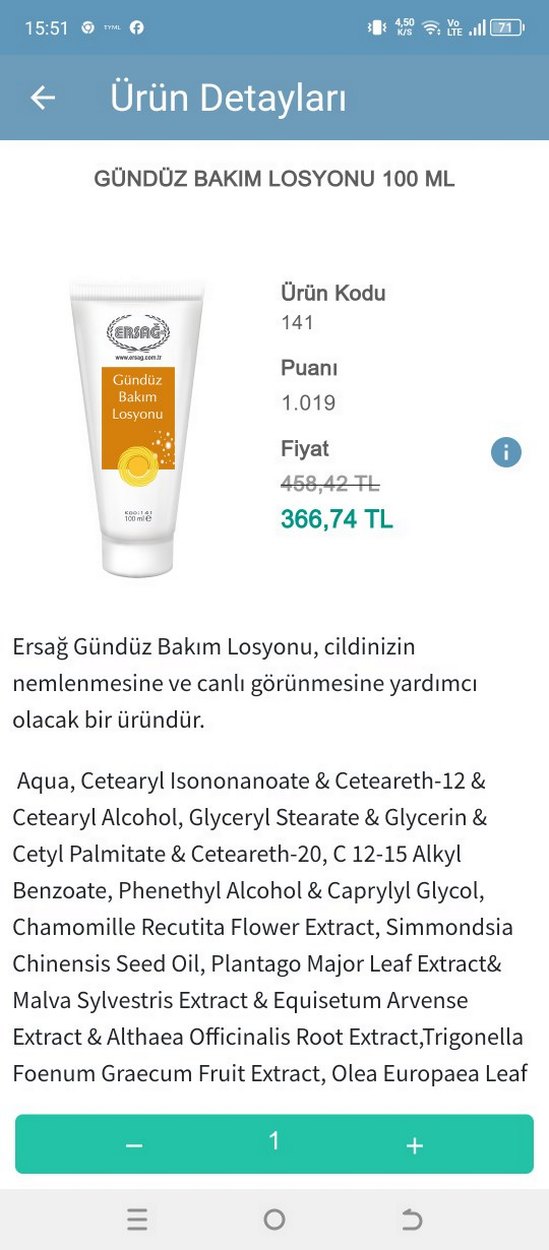 Ersağ Gündüz Bakım Losyonu, papatya ve bitkisel özlerle cildinizin nemlenmesine ve canlı görünmesine yardımcı olur.