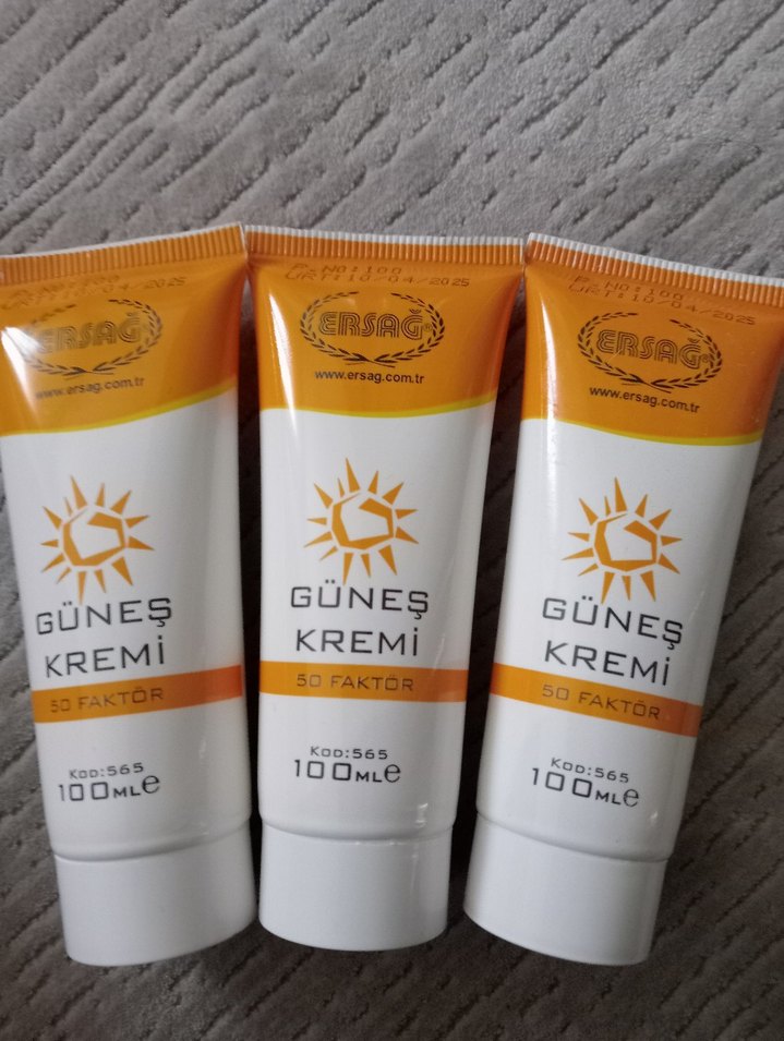ERSAĞ markasına ait SPF 50 faktörlü güneş kremi, 100 ml tüpte güçlü güneş koruması sağlar. ☀️ üç adet fiyatıdır