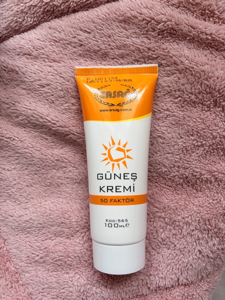 ERSAĞ güneş kremi, 100 ml tüpte SPF 50 koruma sağlar ve cildinizi güneşin zararlı etkilerinden korur. Bir kere kullanıldı yeni almıştım bir sorunu yok