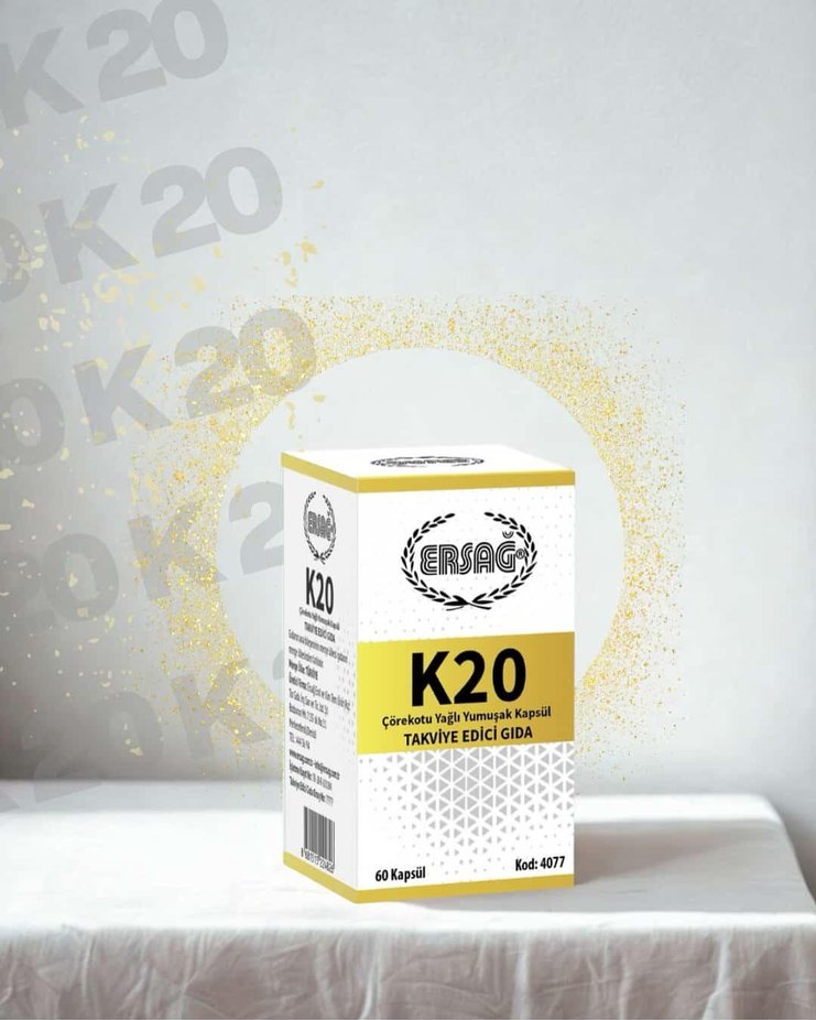 Ersag K20, çörekotu yağı içeren 60 kapsüllük yumuşak takviye edici gıda ürünüdür.