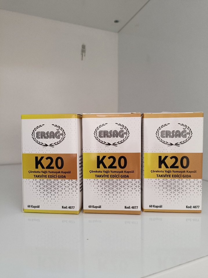 Ersag K20, ayçiçek yağı içeren 60 kapsüllük takviye edici gıda paketidir. Sağlıklı destek sağlar.