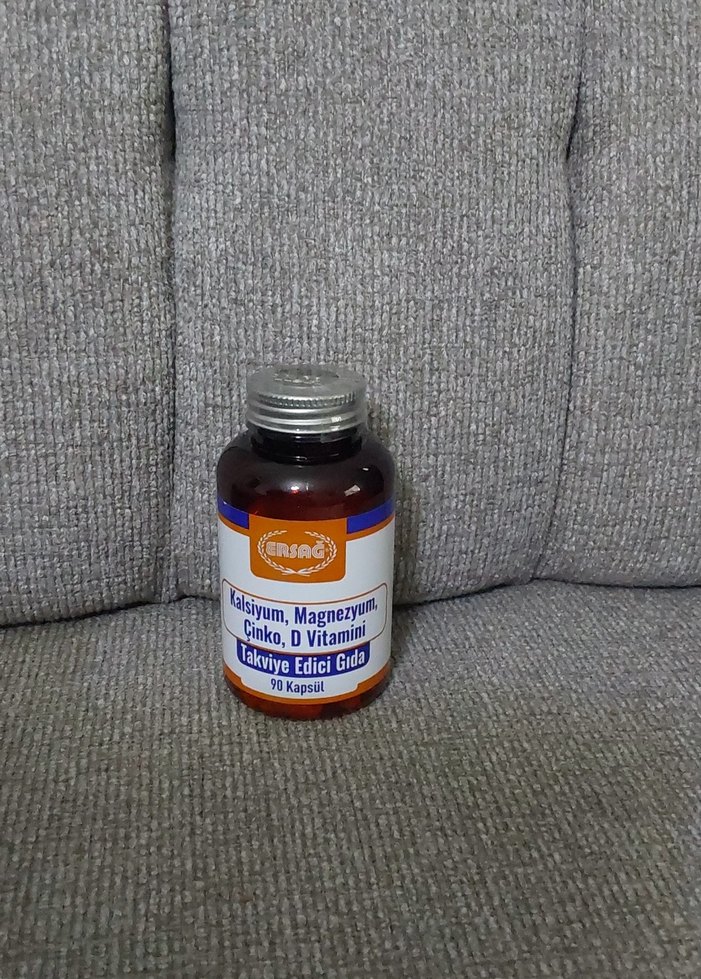 ERSAG markalı, kalsiyum, magnezyum, çinko ve D vitamini içeren 90 kapsüllük takviye edici gıda. Beslenme desteği sağlar.