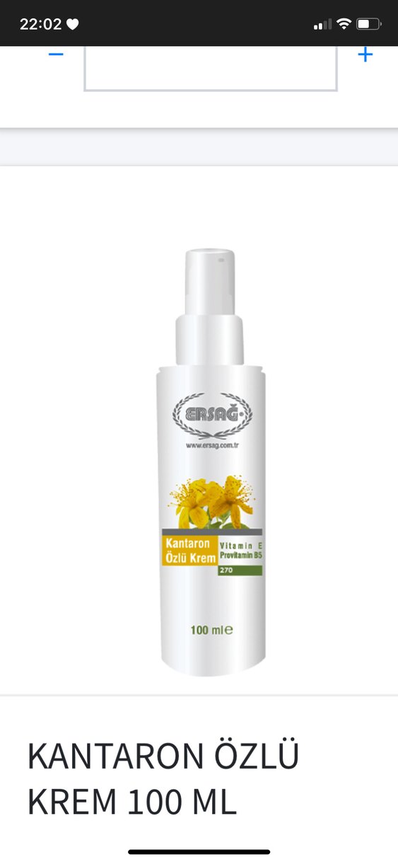 ERSAG markalı, kantaron özlü vücut kremi, Vitamin E ve Provitamin B5 ile cildi besler ve nemlendirir. 100 ml şişede sunulur.