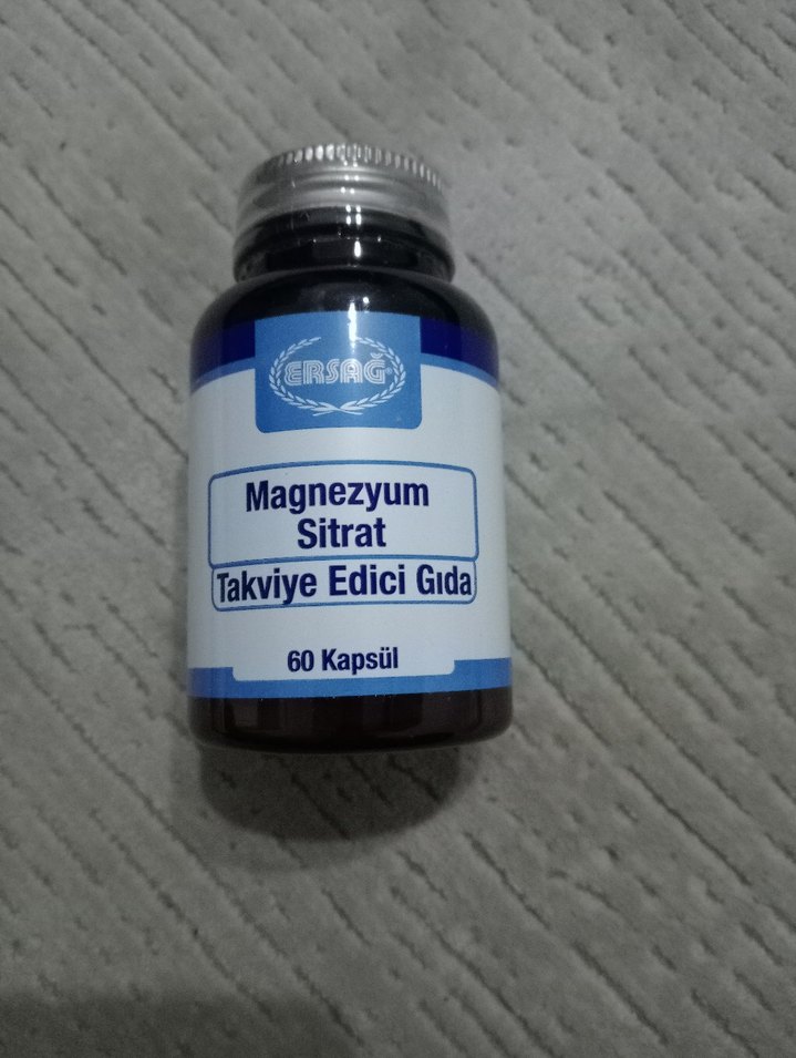 Ersağ Magnezyum Sitrat takviye edici gıda, 60 kapsül içerir ve mineral desteği sağlar.