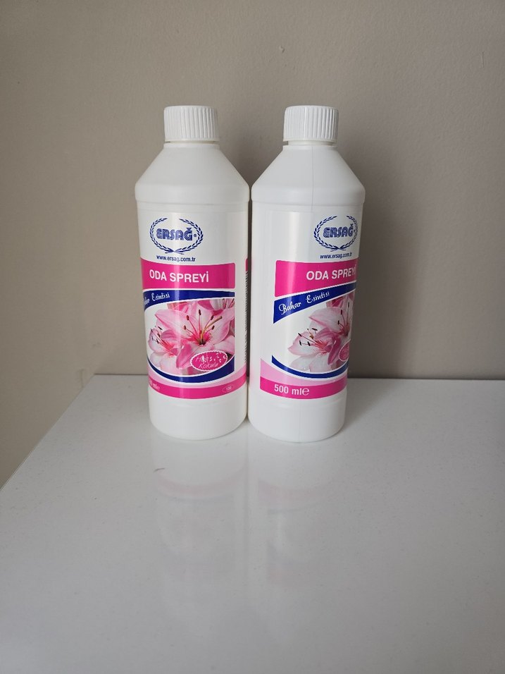 Ersağ oda spreyi, çiçek kokusuyla 500 ml şişede sunulmaktadır. İç mekanları ferahlatmak için uygundur.