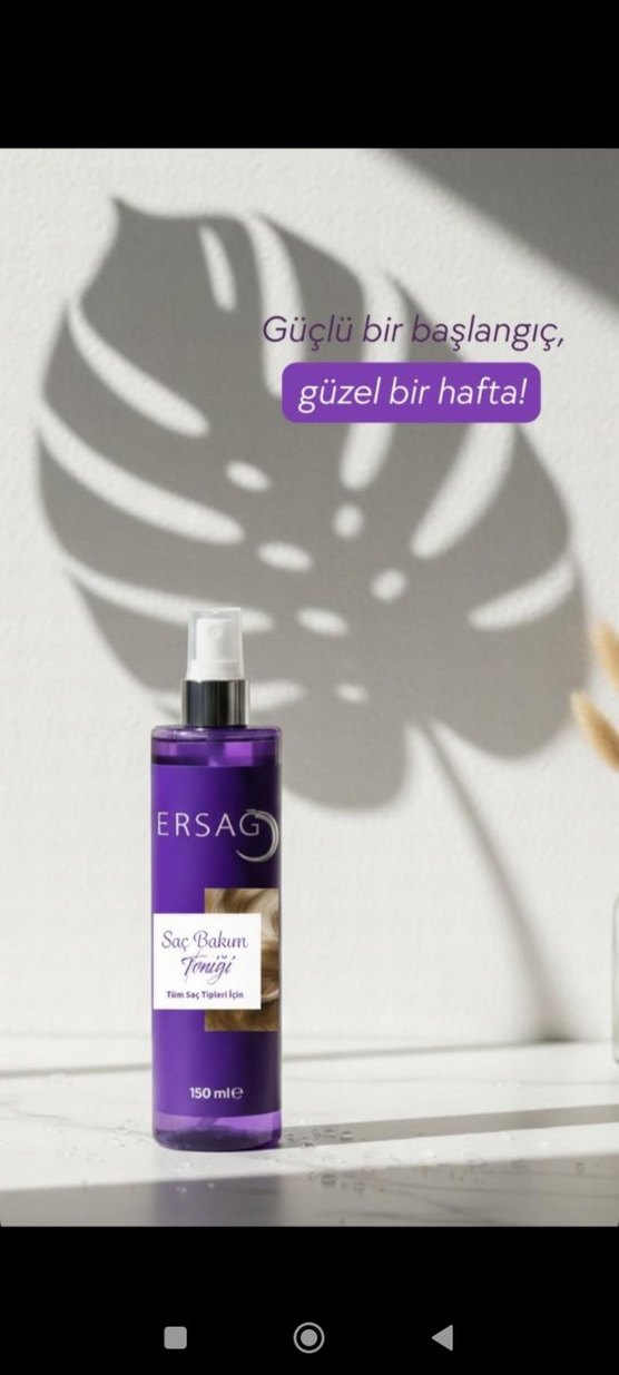 ERSAG saç bakım toniği, tüm saç tipleri için 150 ml sprey şişede. Saç bakım rutininize ferahlatıcı bir başlangıç sağlar.
