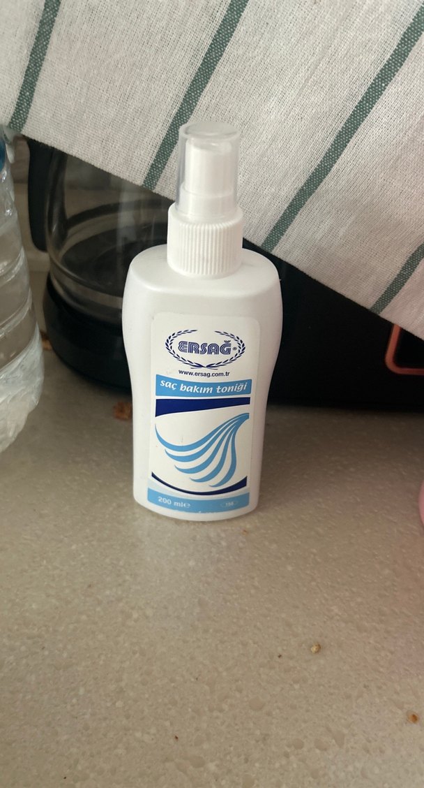 Ersağ markasına ait 200 ml sprey şişede saç bakım toniği, saç sağlığını destekler.