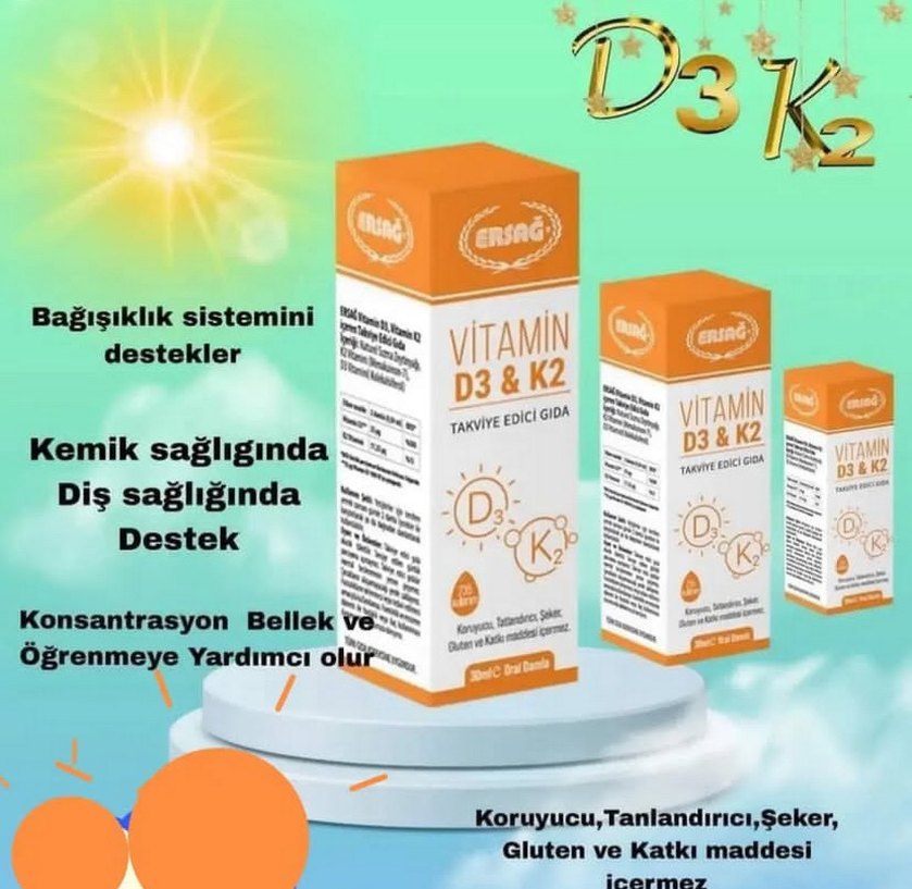 Parlak turuncu renkte BB krem, D3 ve K2 vitaminleri içerir. Takviye edici gıda olarak ağız damlası formundadır.