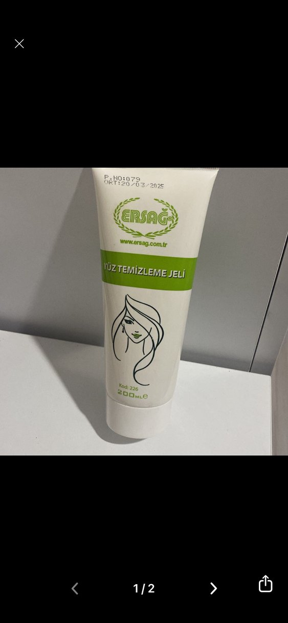 Ersağ markasına ait 200 ml'lik yüz temizleme jeli, cildi nazikçe temizler.