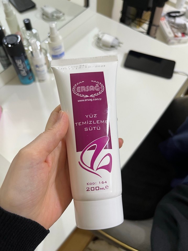 Ersağ markasına ait 200 ml'lik yüz temizleme sütü, cildi nazikçe temizler ve nem dengesini korur.