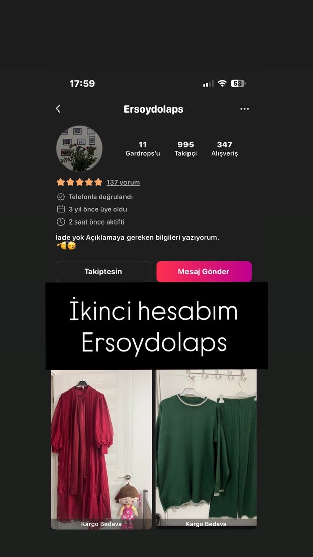 Ürünlerimin aynısını ikinci sayfamdadır İban sorunu yaşıyorum o yüzden çoğu satışlarım orada