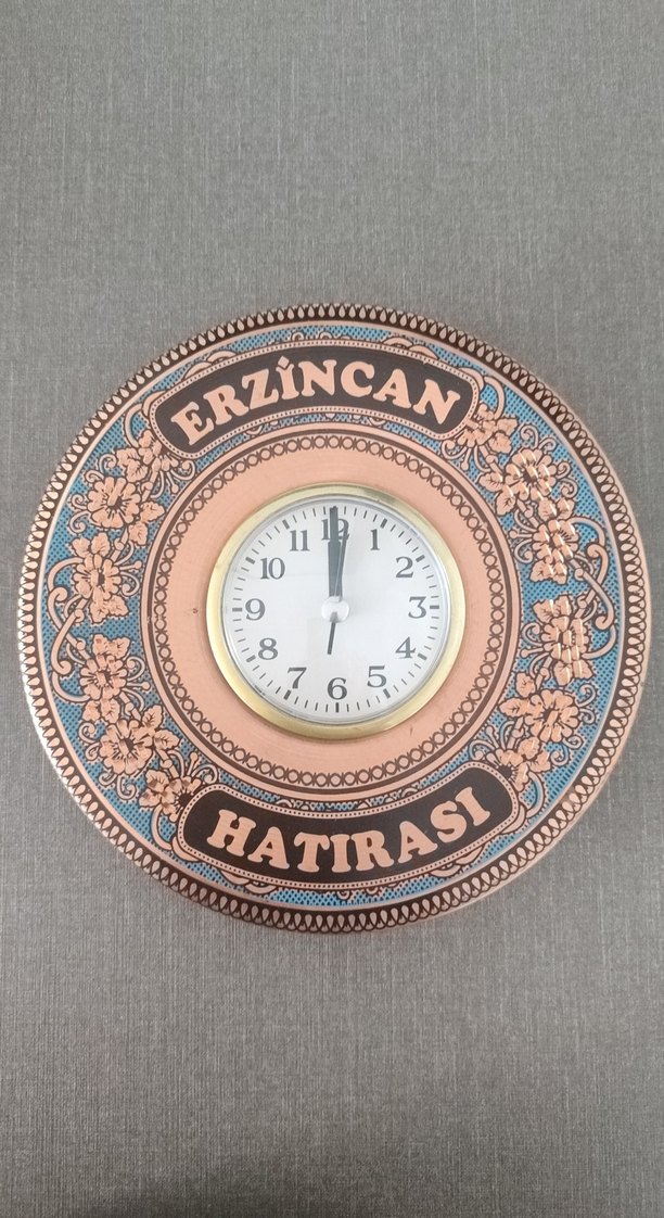 "Erzincan Hatırası" yazılı, çiçek desenli dekoratif duvar saati. Beyaz kadranda siyah sayılar bulunur. ⏰ister masa üzerinde ister duvara asılarak kullanılabilir. erszincandan hediye gelmiştir hiç kullanılmadı yenidir