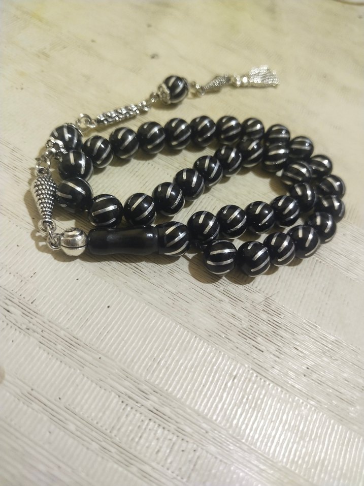 orjinal Erzurum Oltu taşı tesbih gümüş işlemeli püskülü alpaka alana hayırlı olsun