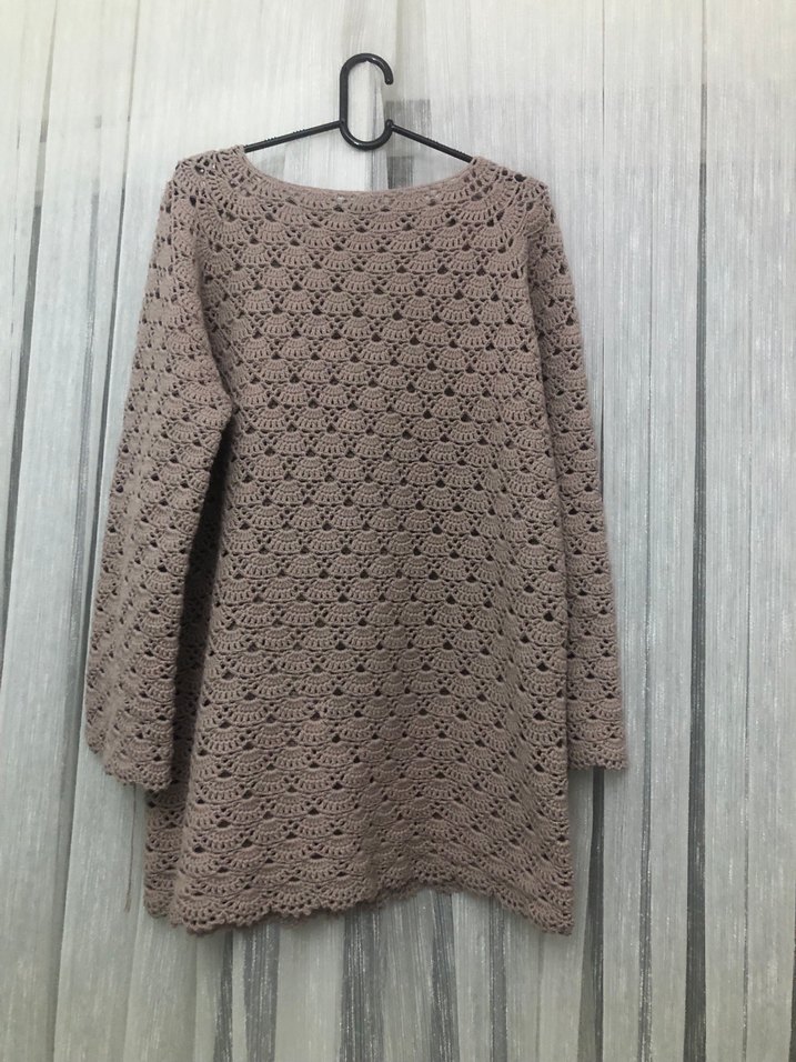 Bej renkli, uzun kollu, yuvarlak yakalı örgü triko. Bol kesim ve midi boyda, günlük kullanım için uygun rahat bir parça istenilen renk yapılır
