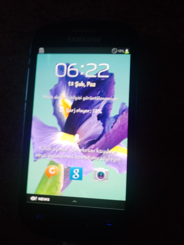Kilit ekranında saat 06:22 görünen koyu mor renkli Android telefon. Ekranda çiçek teması ve alt kısımda uygulama simgeleri var. eşi 3mini