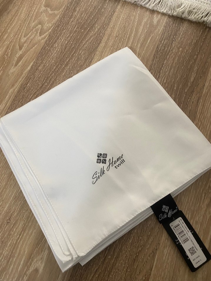 Beyaz renk twill silk home eşarp sıfır etiketli sadece kenarında dikiş hatası var o kadar almıştım kıyafetime uymadı sıfır etiketli ürün