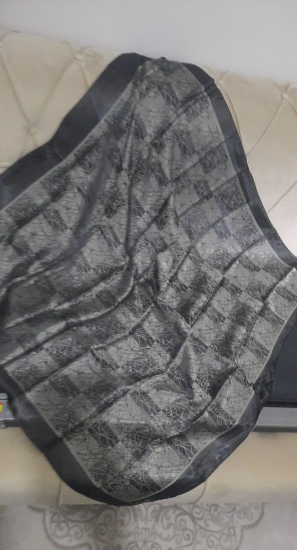 Dökümlü gri kadın şalı, yumuşak sentetik kumaş üzerine ince desenlerle gotik ve rahat bir tarz sunar. Etiket söküldü dolapta bekledi sıfırdır