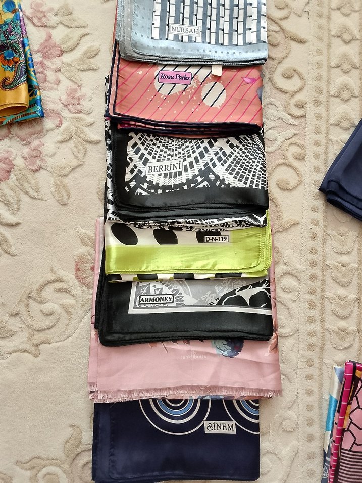 hiç kullanılmamış sıfır eşarplar iyi markalar tane 80 toplu alımda indirim yapılır.