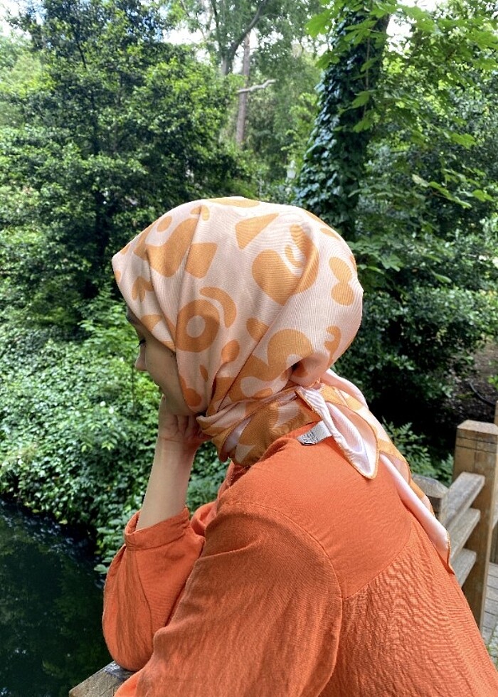 Özel tasarım zemin koyu turuncu desen açık turuncu twill esarp