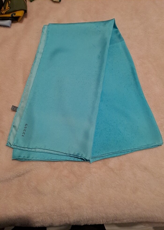 Gucci su yeşili eşarp birkaç defa temiz kullanıldı birkaç sprey lekesi dışında hiçbir deformesi yok