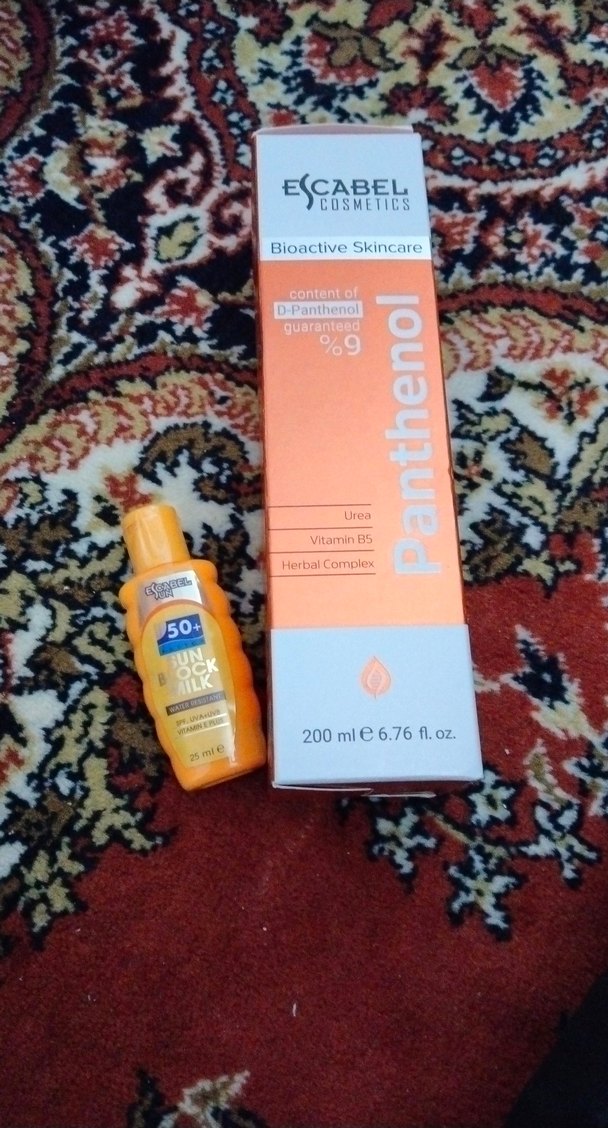 Escabel güneş koruyucu süt, %9 D-Panthenol, üre, B5 vitamini ve bitkisel kompleks içerir. 200 ml hacmindedir. ☀️
