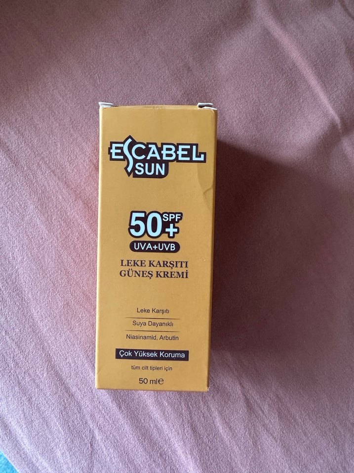 Escabel güneş kremi, SPF 50+ ile UVA ve UVB ışınlarına karşı çok yüksek koruma sağlar. Suya dayanıklı olup niasinamid ve arbutin ile leke oluşumunu engellemeye yardımcıdır. Tüm cilt tipleri için uygundur. ☀️