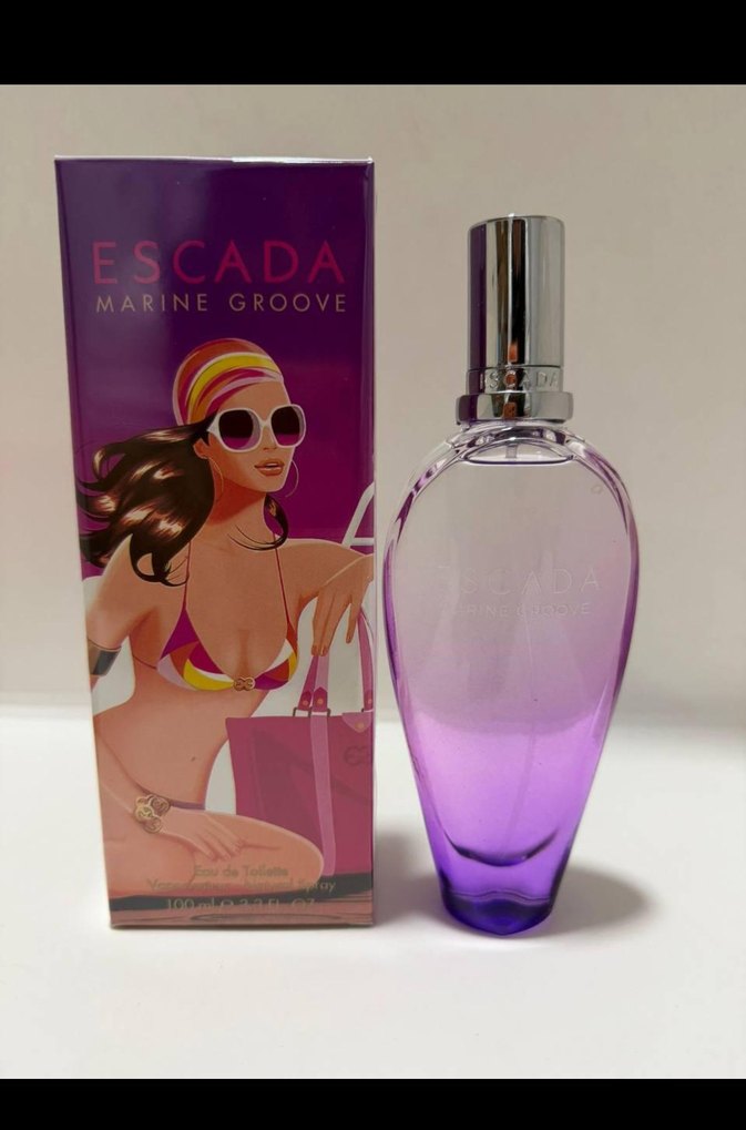 Escada Marine Groove, şık mor degrade şişesi ve canlı ambalajıyla kadın parfümüdür.